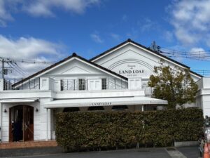 テラス席でパンをいただき、